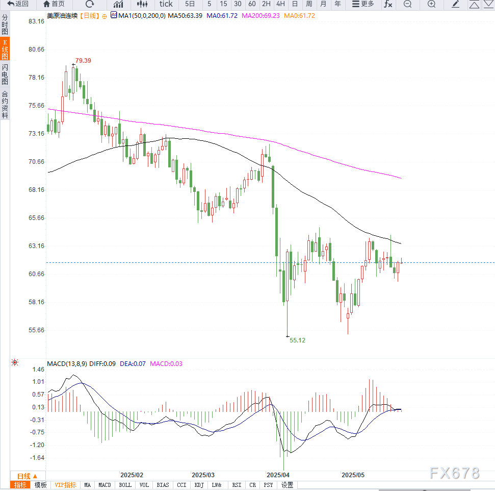 从技术面来看,美国原油(WTI)日线图显示价格延续自60美元附近的反弹趋势,已突破短期均线压制,MACD指标呈现金叉并上穿零轴,显示多头动能增强。