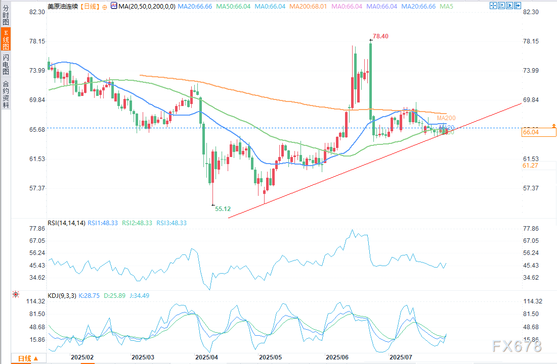 XM外汇管网APP讯——周一(7月28日)欧盘时段,原油价格攀升,得益于美欧贸易协,该协定消除了对欧洲商品征收30%关税的威胁,并将焦点转向能源合作。协议中包含欧盟承诺采购7500亿美元美国能源的内容,这一信号不仅巩固了跨大西洋关系,也提振了整体市场情绪。此外,市场对美中关税休战协议延期的预期(双方定于斯德哥尔摩举行谈判)进一步加剧了乐观氛围。
