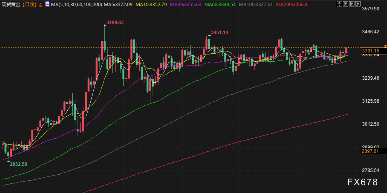 现货金周二上涨 0.83%,最高至3393.47美元/盎司,这是8月11日以来的最高水平。12月交割的美国期金上涨 0.5%,结算价报 3433 美元。受到避险需求提振,美国总统特朗普解雇美联储理事后,投资者对联储的信心有所动摇。