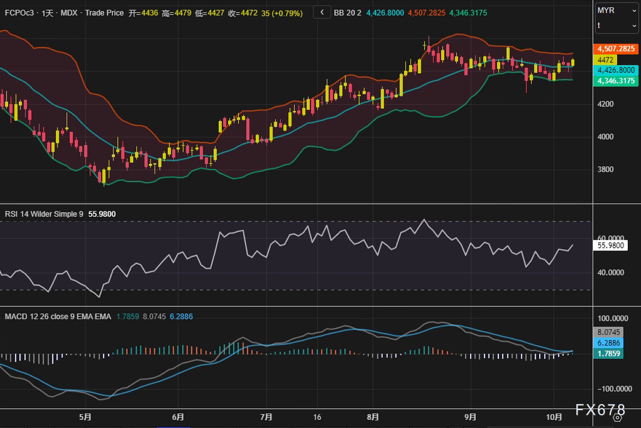 供应收缩预期主导市场情绪 吉隆坡交易机构Iceberg X专户交易员David Ng表示:“原油棕榈油期货走强,主要源于市场对未来数周产量下滑的预期。亚洲时段豆油价格走强进一步提振市场情绪。”他明确指出,目前价格在4400林吉特存在支撑,阻力位则上看4580林吉特。 这一判断与近期行业调查相互印证。多家知名机构预测,马来西亚9月棕榈油库存将迎来七个月来首次下降,同时产量环比收缩已成市场共识。10月10日马来西亚棕榈油局(MPOB)将发布官方数据,若实际降幅超预期,可能引发新一轮买盘。 关联市场传导支撑动力 芝加哥期货交易所(CBOT)豆油价格今日上涨0.46%,与棕榈油形成联动。尽管大连商品交易所因中国国庆假期休市至10月8日,削弱了亚洲植物油市场的内部参照,但全球油脂板块的整体强势仍为棕榈油提供外部助力。 能源市场方面,OPEC+对11月产量的谨慎调整使原油价格持稳,增强了棕榈油在生物柴油领域的掺混经济性。值得注意的是,阿根廷政府近日通过官方公报发布两项决议,上调国内生物燃料价格,此举可能进一步强化植物油的能源属性溢价。 货币波动与市场博弈 林吉特兑美元汇率微升0.02%,虽小幅提升海外采购成本,但未改变整体贸易流向。当前市场核心矛盾集中于MPOB数据验证:若库存拐点确认,价格或突破近期震荡区间;但需警惕数据不及预期引发的多头平仓风险。 展望 短期来看,棕榈油市场已从获利了结模式切换至供需驱动逻辑。交易者需重点关注10月10日MPOB报告的实际数据与市场预期间差值,同时跟踪原油价格走势及豆油-棕榈油价差变化。尽管技术面显示上行空间打开,但若未来产量降幅有限,当前涨势的可持续性将面临考验。