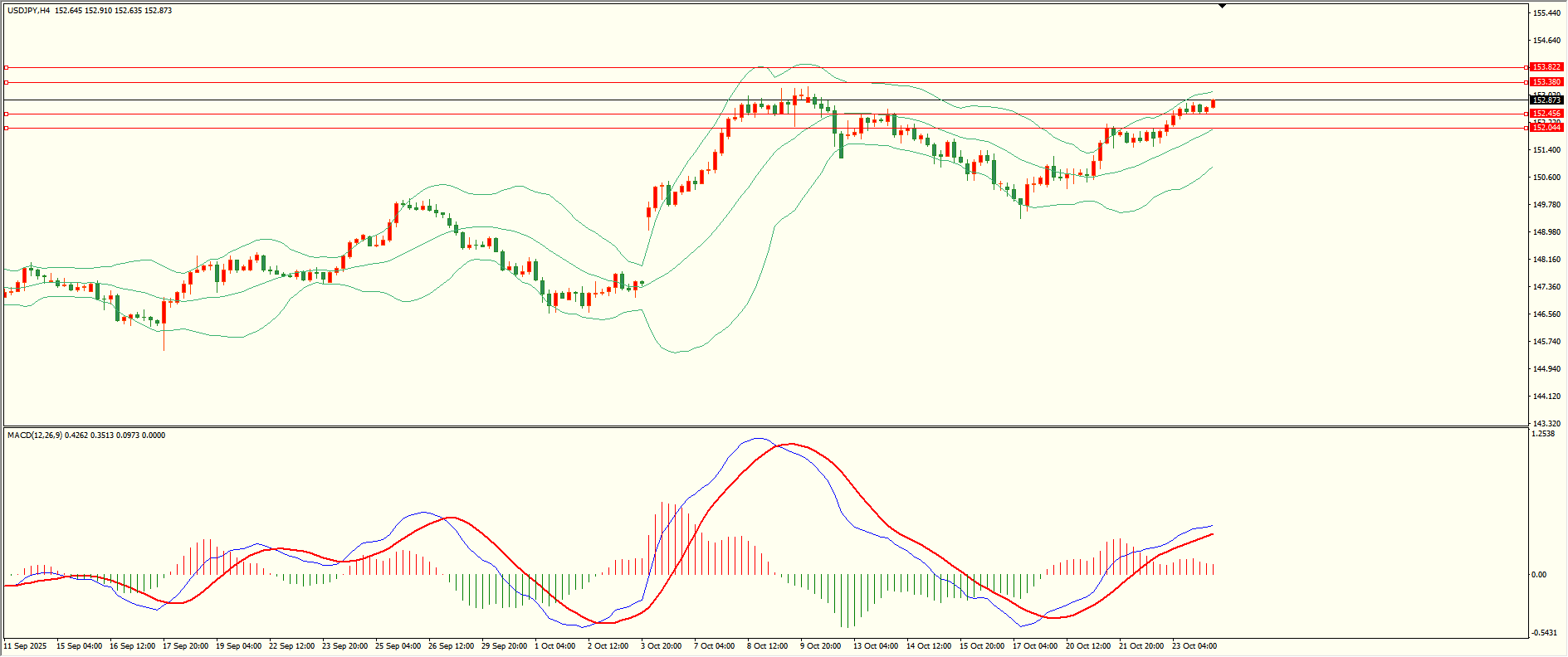 美日昨日亚市开盘后延续走高,至收盘续创日内新高,日线报收中阳线,目前上方临近前高阻力,突破后方可继续,从4H来看,布林中轨偏上,MACD零轴上方运行,日内下方首要支撑152.45,第二支撑152.00,上方阻力153.35,153.80,保持在第一支撑上方短线有望测试第一阻力。 黄金:XAUUSD