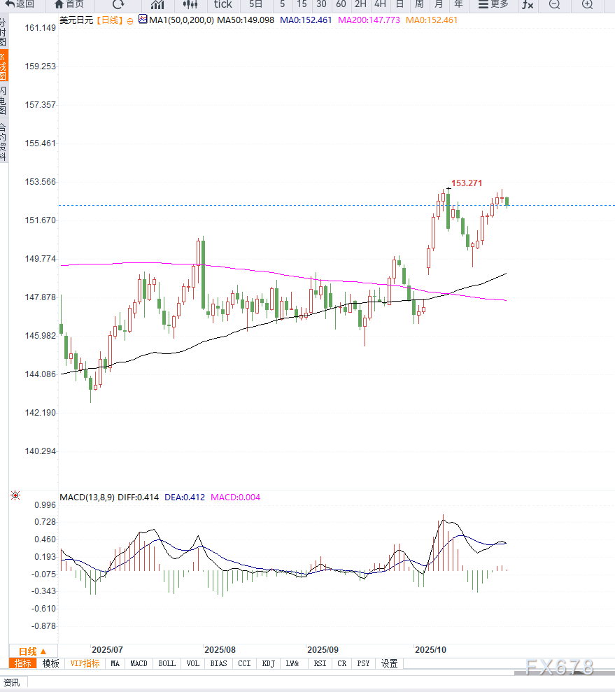 编辑观点: 当前日元的走势呈现出“政策预期与干预预期交织”的复杂格局。 政府官员的表态虽短暂提振了日元,但高市早苗的财政扩张计划意味着货币政策收紧空间有限。 若本周日本央行暗示未来加息路径,日元或迎来阶段性走强;反之,若政策基调偏鸽,汇率可能重返153上方。 总体而言,本周的双央行会议将成为决定美元/日元方向的关键催化剂,市场短线波动风险显著上升。