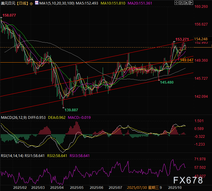 高市交易遇见美国政治干预,汇价宽幅震荡 随着高市早苗的上台,金融市场迅速形成了一种新的交易逻辑——“高市交易”。其核心是对新政府将重启大规模财政刺激和超宽松货币政策相结合的预期,这被视为前首相安倍晋三“安倍经济学”的延续。 日本新任首相高市早苗推出激进财政支出计划,市场预期日本央行或因此暂缓尽早收紧货币政策,近期制约了日元实现任何实质性升值的空间。此外,中美贸易乐观情绪升温,成为削弱日元等传统避险资产需求的另一因素,在关键美国联邦公开市场委员会(FOMC)决议前市场进行仓位调整,出现宽幅震荡。 除此之外,美国财政部长斯科特·贝森特的支持性言论,叠加市场对日本央行即将加息的预期,均有助于限制日元下行空间。 此外,美国总统唐纳德·特朗普与日本首相高市早苗举行的高关注度会晤,其结果或为日元提供提振动力。 交易员或亦选择等待本周三凌晨美联储公开市场委员会(FOMC)公布议息会议结果——紧随其后,日本央行将于周四公布最新货币政策决议。 日本官方喊话升值限制日元继续贬值 日本经济产业大臣木内敏充周二的表态,再度引发市场对日本政府或出手干预以遏制日元进一步走弱的担忧。 这也暴露了日本政府内部在汇率问题上的潜在分歧。首相办公室可能更愿意日元走弱,以提振出口企业利润和整体经济增长,从而在政治上获得商业支持。然而,财务省(MoF)更关心汇率稳定和进口成本。 日元走弱推高了进口能源和食品的价格,加剧了通胀压力,这在普通民众中非常不受欢迎,尤其是在当前通胀已经高于央行目标的情况下。财务省的口头干预就是这种内部紧张局势的体现,在实际外汇干预的威胁下,为美元兑日元的上行空间施加了限制。 经济韧性与数据缺失下的美联储 近几周,美国初请失业金人数持续低于市场预期。例如,9月第三周初请失业金人数为21.8万,显著低于23.5万的市场一致预期,创下两个月以来的低点。 他强调,强劲的经济与劳动力市场,使美联储在决定未来利率路径时具备“谨慎施策的空间”。这意味着,在明确且持续的经济走弱信号出现前,美联储并不急于开启降息周期。 颇具讽刺意味的是,即使美国数据没有明显的恶化,美联储内部仍然不乏鸽派言论,CPI不及预期但分项显示美国通胀未放缓验证了数据并未支持降息,但仿佛若美联储按兵不动,将恐引发投资者恐慌,导致股市暴跌、国债收益率飙升——甚至可能触发美联储原本试图规避的金融危机。 民调揭示日本央行加息时点:经济学家预期与政策走向 尽管高市早苗倾向于宽松政策,但经济学家认为日本央行将保持政策独立性。有调查称尽管高市早苗在选举中获胜,仍有三分之二的经济学家认为日本央行不会推迟加息。该调查还披露了以下关键结论: 在参与调查的75位经济学家中,有45位(占比60%)预计日本央行将在第四季度加息25个基点,使利率升至0.75%;67位受访经济学家中,64位(占比96%)预测,到2026年3月前,借贷成本将至少升至0.75%;而在35位特定受访经济学家中,46%支持1月加息,31%倾向于12月加息,仅有14%认为10月适合调整利率。 当前市场预期日本央行将加息、美联储将降息,这种货币政策差异有望收窄美日利差,进而对日元形成支撑。 日本央行内部分歧 政治格局生变之际,日本央行内部的政策论战亦渐趋公开。委员间对未来货币政策路径的分歧日趋显著。论战核心聚焦于如何解读当前通胀数据,以及政策正常化的适宜时点。 鹰派阵营核心人物为委员会委员高田肇(HajimeTakata)。10月20日,他再度公开呼吁加息,称“当前乃上调政策利率的绝佳窗口期”,并强调日本已逼近物价稳定目标。这一明确鹰派立场,直接对新政府的鸽派倾向形成挑战,同时也反映出央行内部部分政策制定者对通胀持续性的担忧。 与之相对,以行长植田和男(KazuoUeda)为首的谨慎派则主张采取更趋审慎的策略。 植田行长多次强调,10月是否加息,完全取决于后续经济数据表现,以及他对通胀与增长预期实现的信心是否增强。由于9月日本核心消费者价格同比上涨2.9%高于上个月的2.7%,使短期内加息预期延续。 副行长清水诚一(SeiichiShimizu)亦表达类似观点,他指出,鉴于日本长期处于低利率乃至零利率环境,货币政策正常化可能引发的市场反馈存在极大“不确定性”。 技术面解析: 本周美元兑日元在153.25-153.30区间(即月度高点与上升通道上轨交汇处)附近遇阻回落,这在日线图上正在初步构筑双顶形态为看跌形态。 尽管如此,日线图上的震荡指标仍处于正值区间,这意味着汇率若进一步下行,或在150.70-151.10区间附近获得支撑。但若汇率明确跌破151.00关口,则有望进一步下探150.00心理关口,期间或在150.45区间附近有初步支撑。 另一方面,若汇率突破亚欧时段高点(约152.54区间)并实现实质性回升,大概率将吸引新资金入场,且涨幅或在152.90-153.00区间附近受限。若汇率突破该区间后持续获得买盘推动,进而突破153.25-153.30区间,则将被视为新一轮突破行情,美元兑日元有望重新收复154.00关口。届时涨势或进一步延续,向154.00区间中段附近的下一个关键阻力位推进,随后或挑战154.75-154.80区间及155.00心理关口。